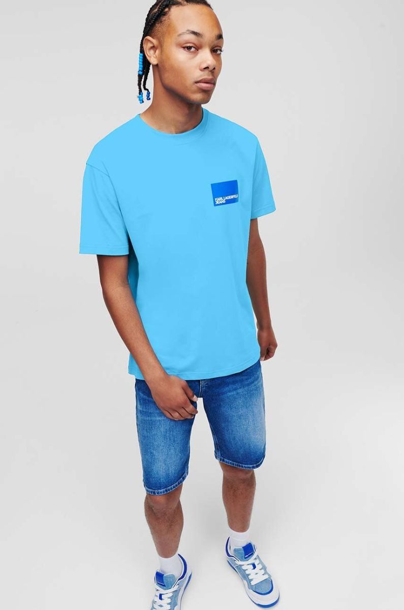 Бавовняна футболка Karl Lagerfeld Jeans з принтом колір блакитний (3345600)