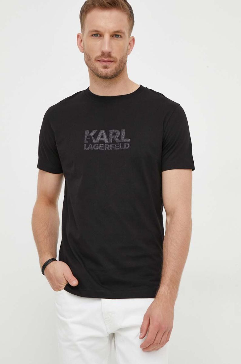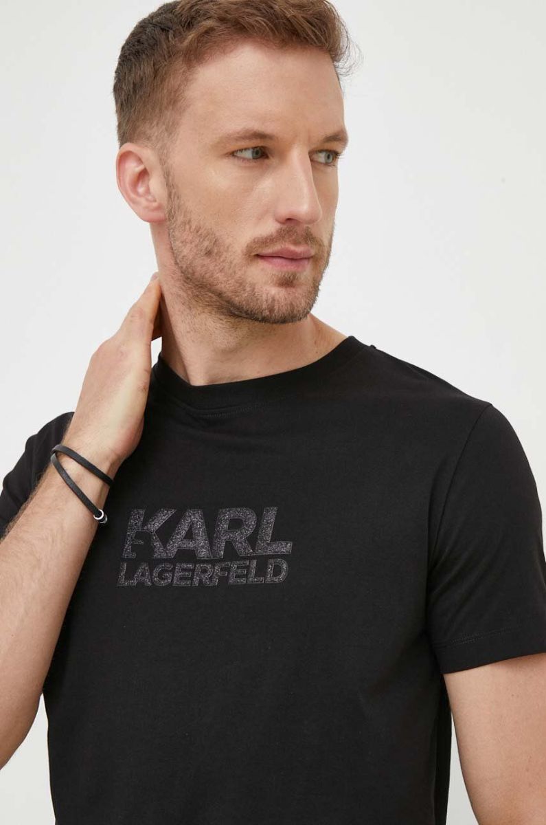 Бавовняна футболка Karl Lagerfeld колір чорний з принтом (3389189)