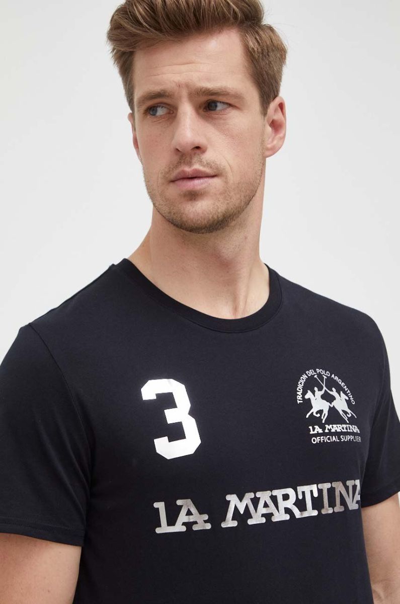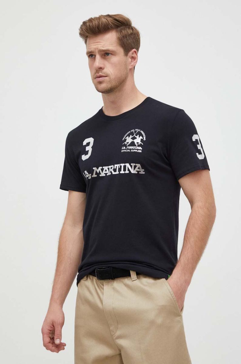 Бавовняна футболка La Martina колір чорний з принтом (3493975)