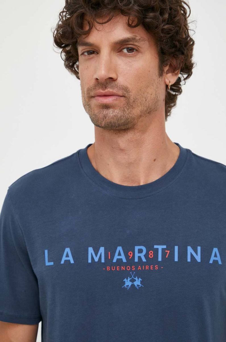 Бавовняна футболка La Martina колір синій з принтом
