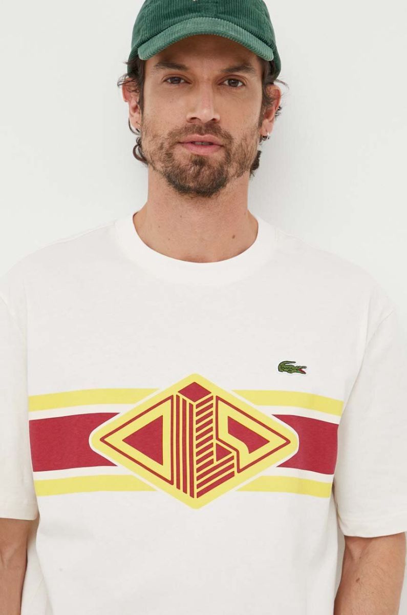 Бавовняна футболка Lacoste колір бежевий з принтом (3295262)