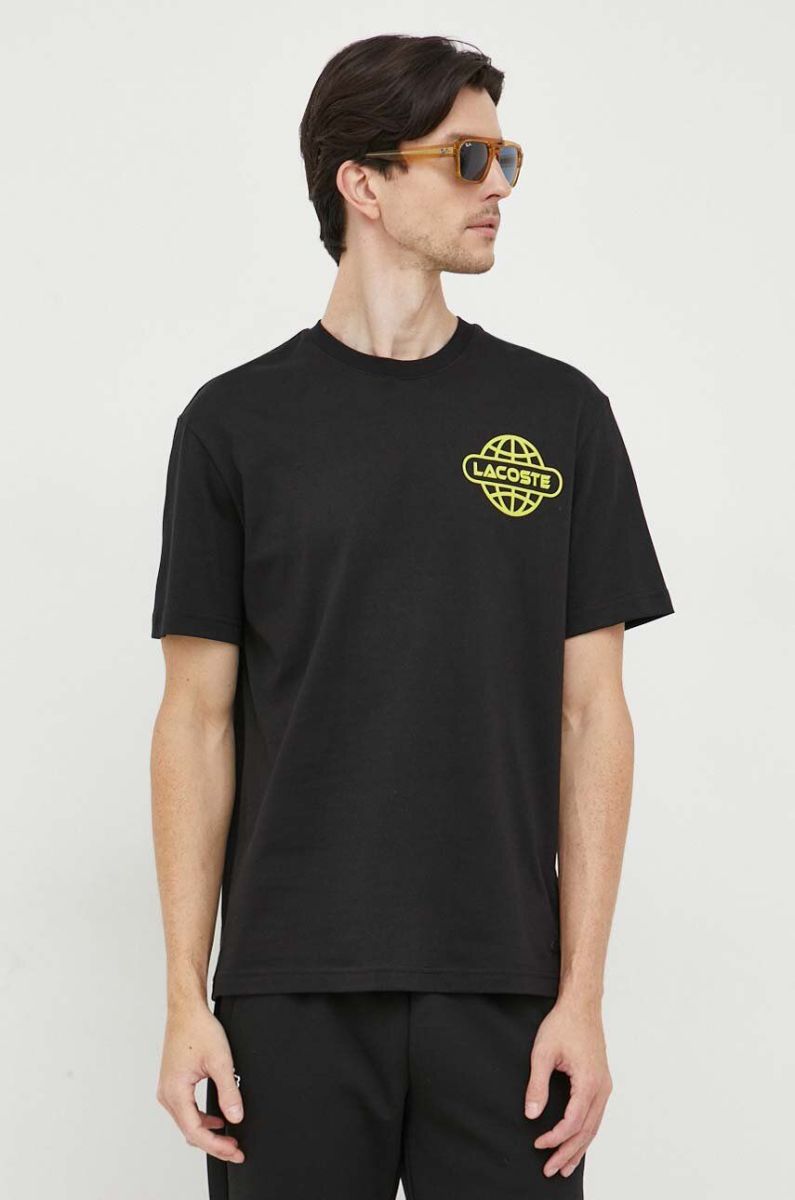 Бавовняна футболка Lacoste колір чорний з принтом (3539098)