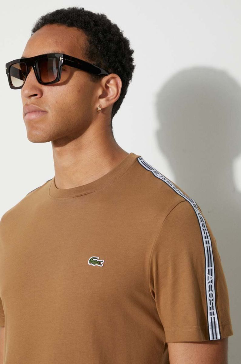 Бавовняна футболка Lacoste колір коричневий з аплікацією