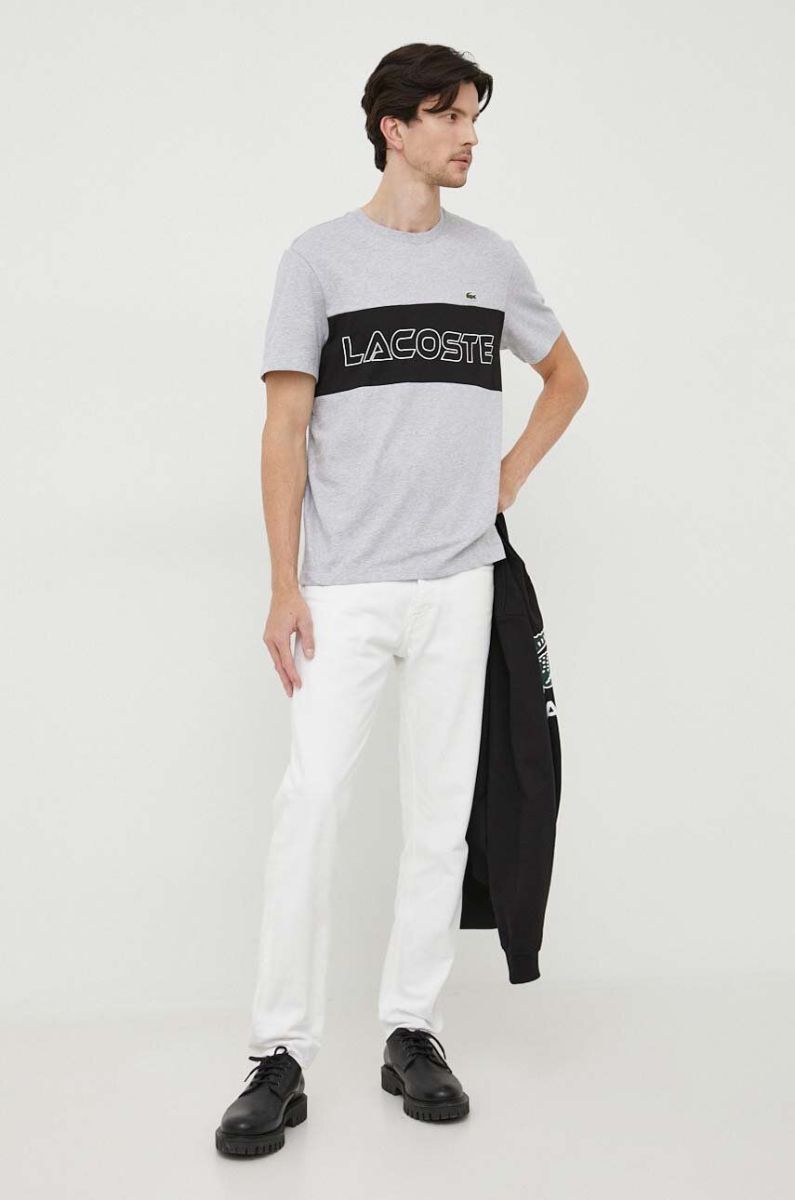 Бавовняна футболка Lacoste колір сірий з принтом (3539077)