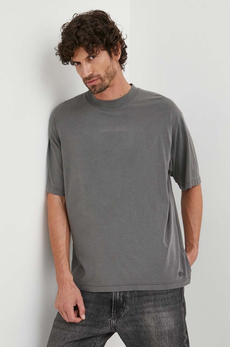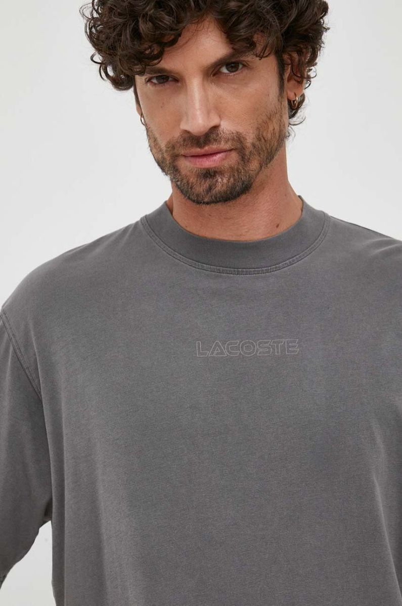 Бавовняна футболка Lacoste колір сірий з принтом (3548262)