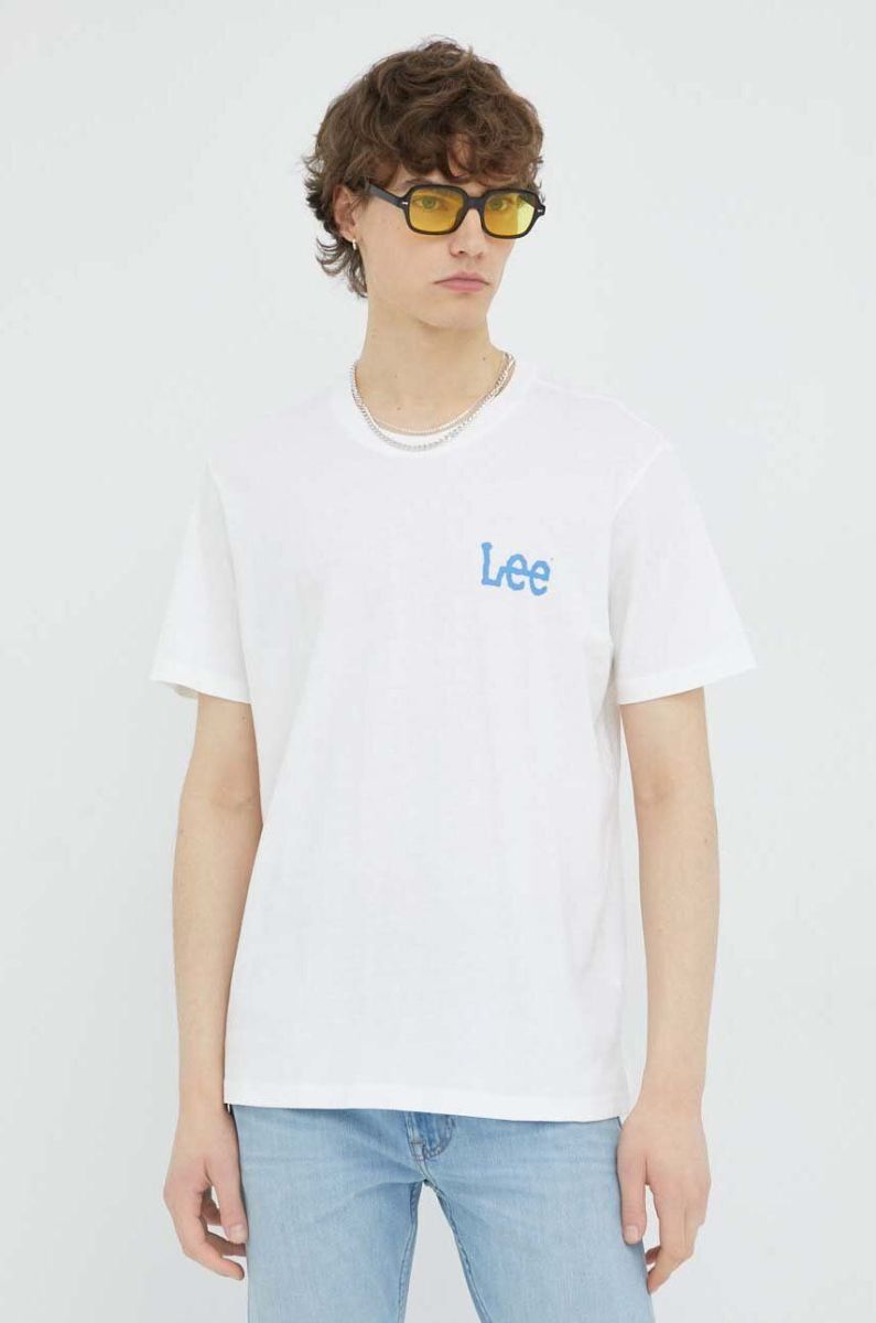 Бавовняна футболка Lee колір бежевий з принтом (3129791)