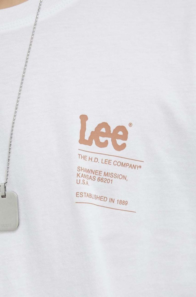Бавовняна футболка Lee колір білий з принтом (2962947)