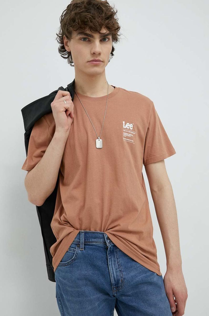 Бавовняна футболка Lee колір коричневий з принтом (2962942)