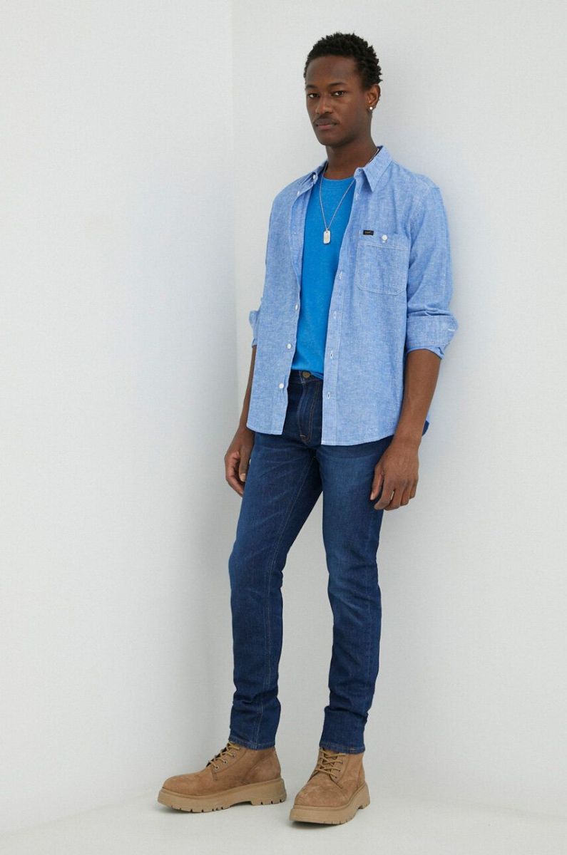 Бавовняна футболка Lee меланж колір блакитний (3065646)