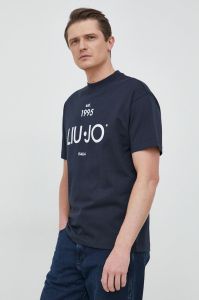 Бавовняна футболка Liu Jo колір синій з принтом