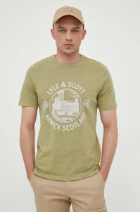 Бавовняна футболка Lyle & Scott колір зелений з принтом