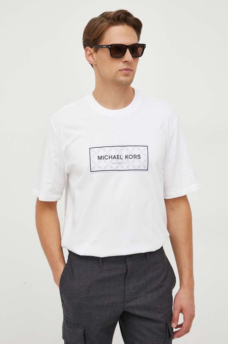 Бавовняна футболка Michael Kors чоловічий колір білий з аплікацією