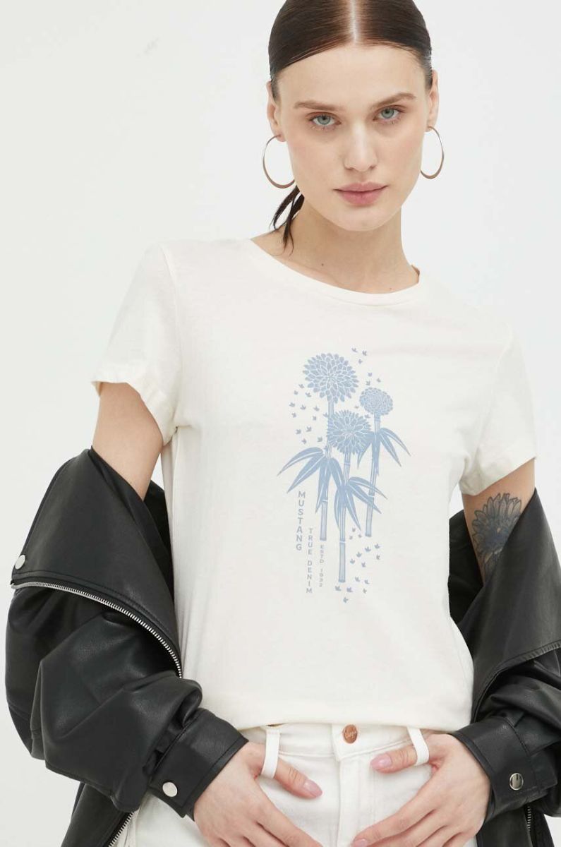 Бавовняна футболка Mustang колір бежевий (3261477)