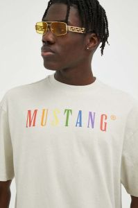 Бавовняна футболка Mustang колір бежевий з принтом (3292140)