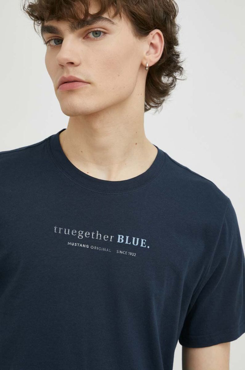 Бавовняна футболка Mustang колір синій з принтом (3104907)
