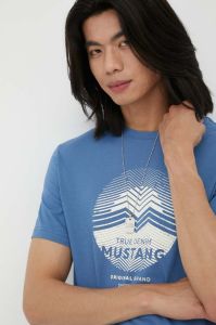 Бавовняна футболка Mustang з принтом колір блакитний (3320454)