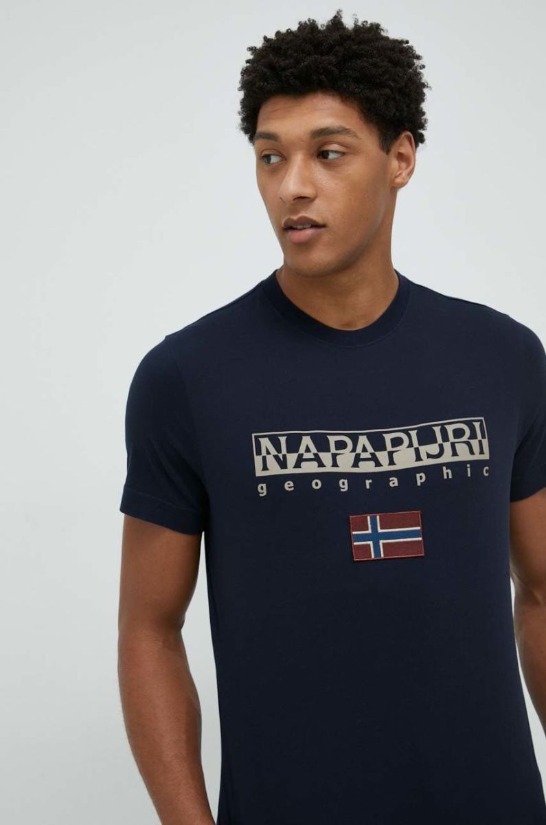 Бавовняна футболка Napapijri колір синій з принтом (2874538)