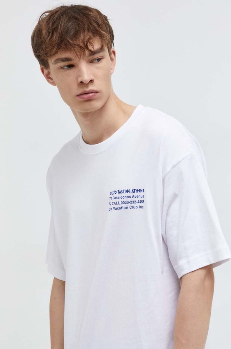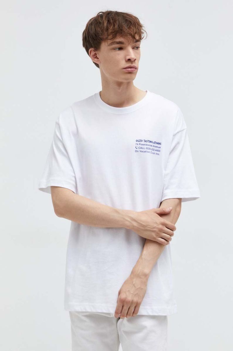 Бавовняна футболка On Vacation чоловічий колір білий з принтом (3615432)