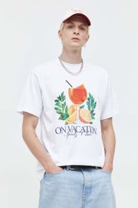 Бавовняна футболка On Vacation чоловічий колір білий з принтом (3622718)