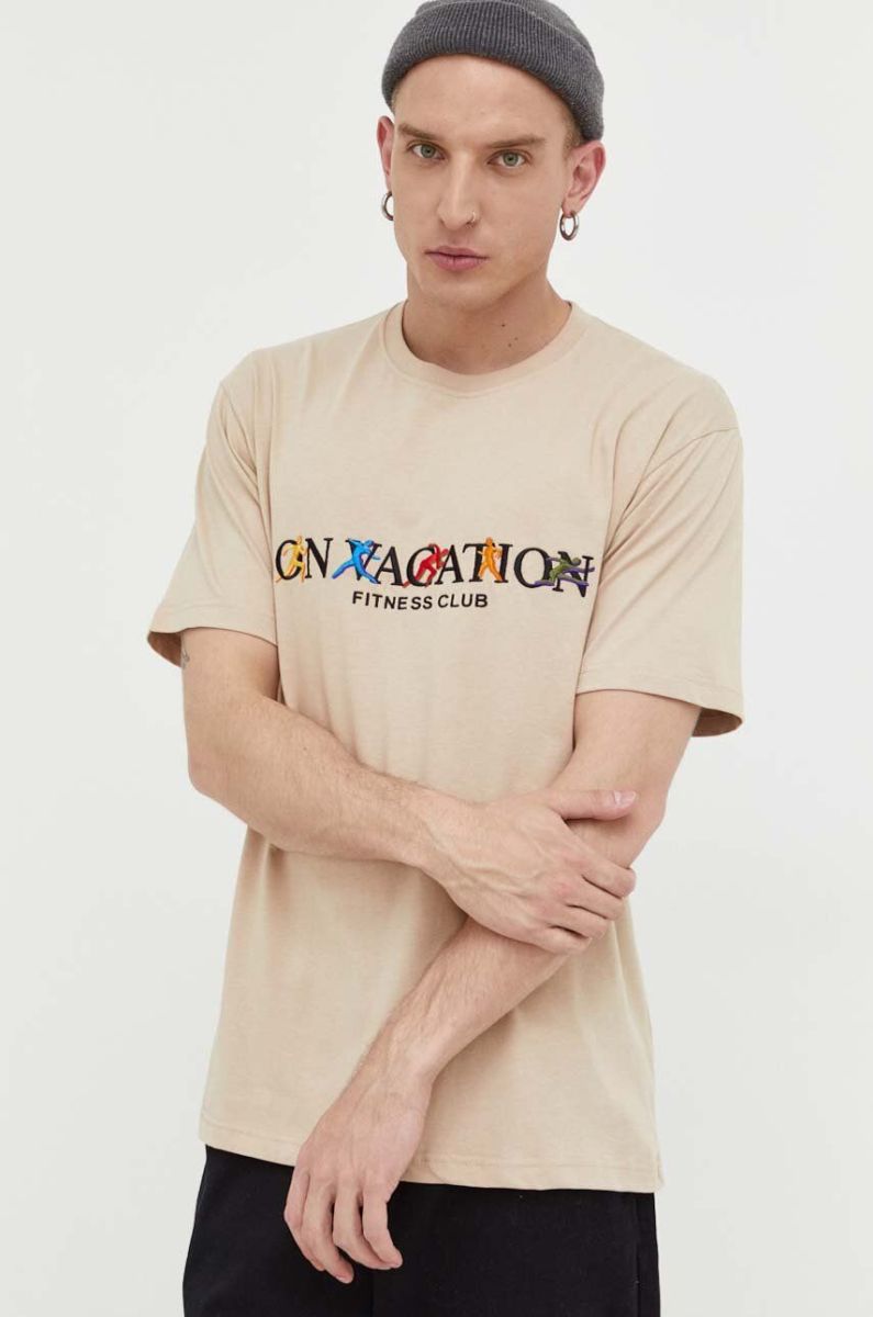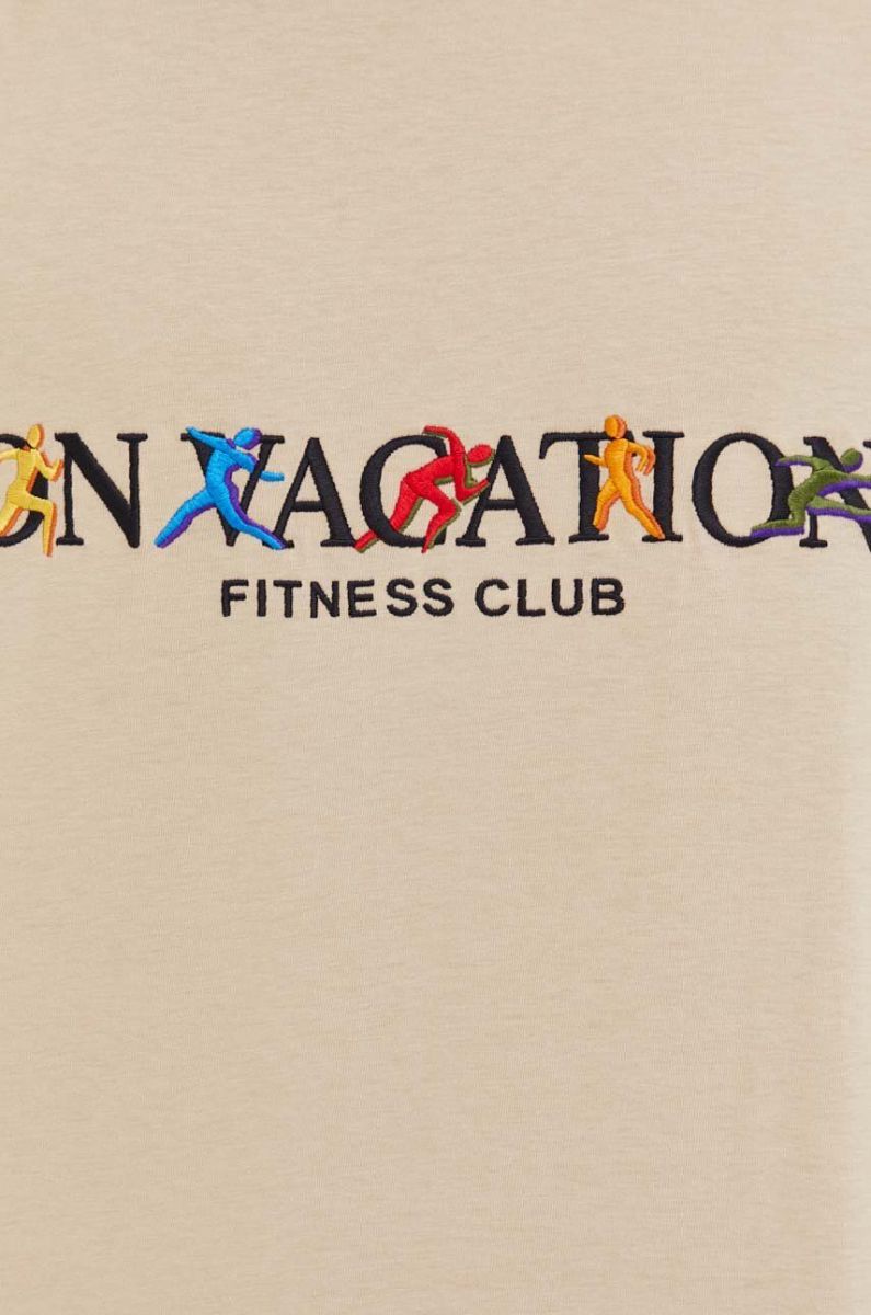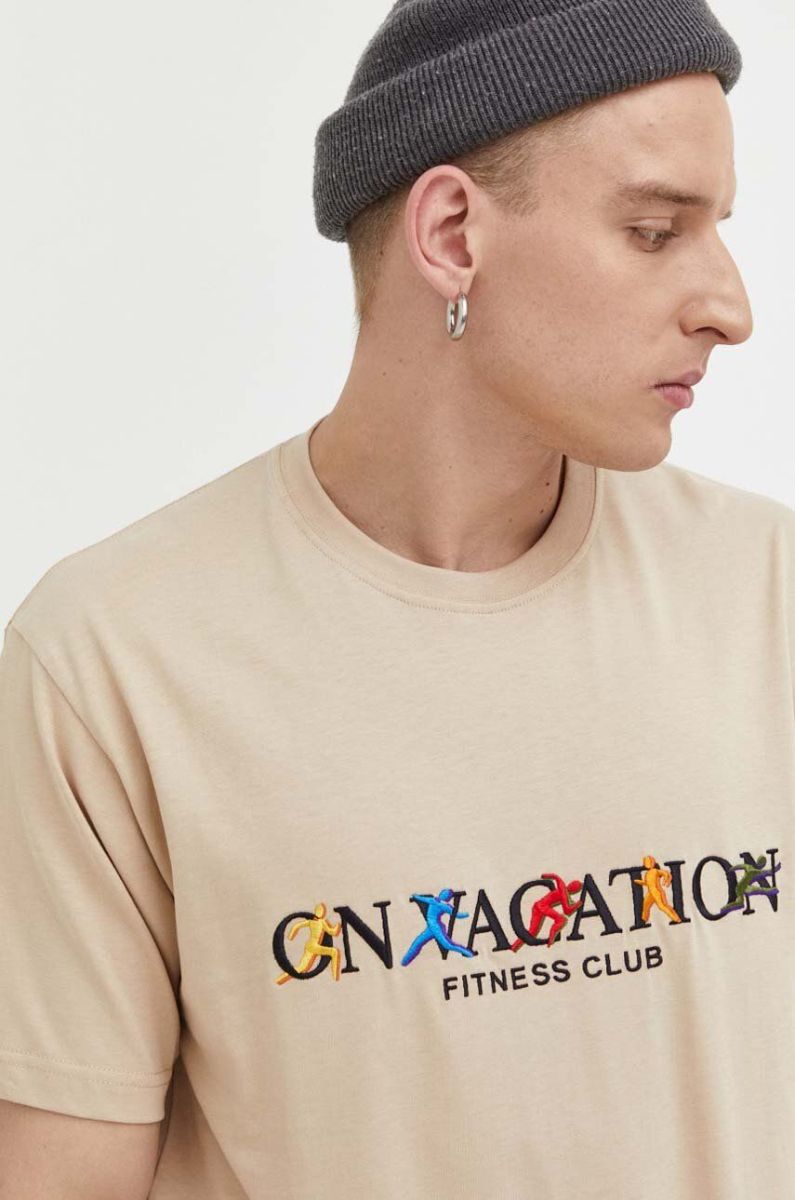 Бавовняна футболка On Vacation колір бежевий з аплікацією (3333436)