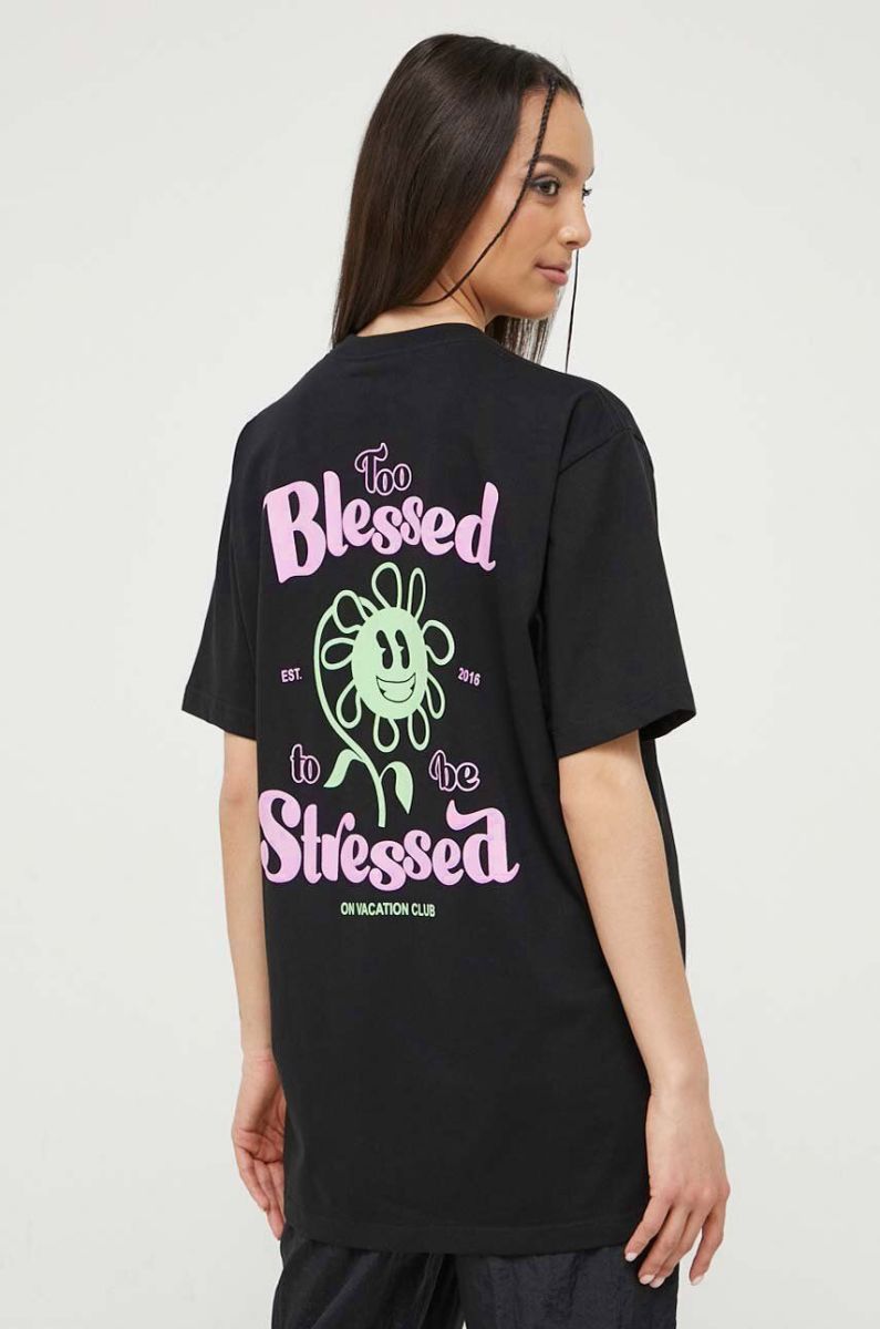 Бавовняна футболка On Vacation колір чорний
