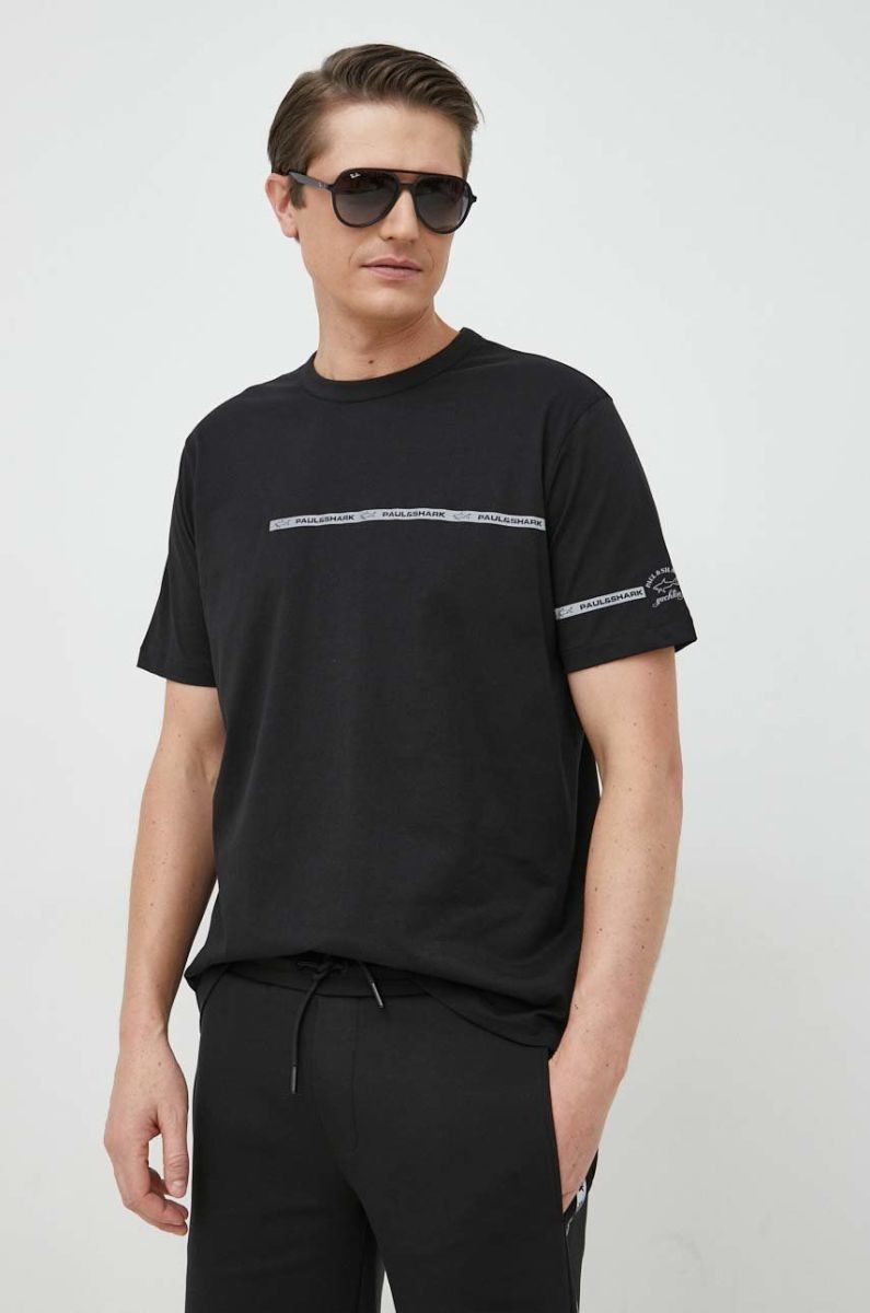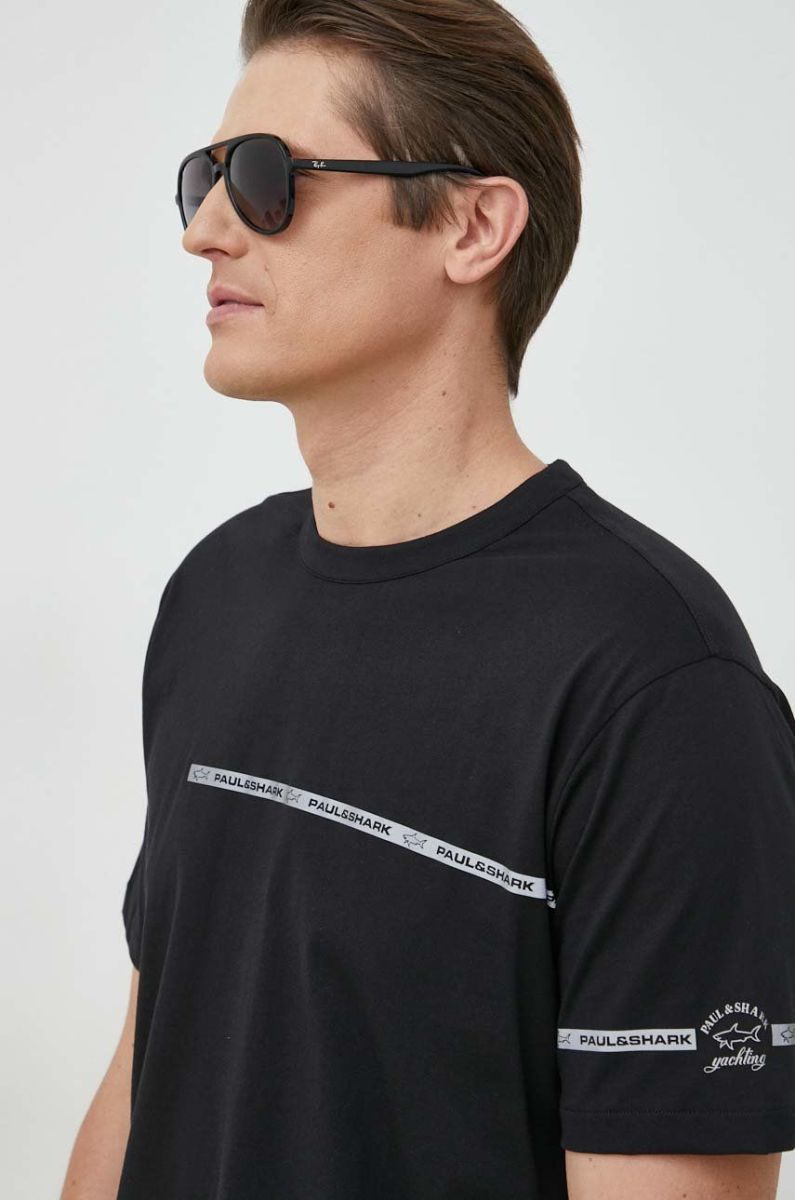 Бавовняна футболка Paul&Shark колір чорний з принтом (2894338)