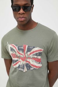 Бавовняна футболка Pepe Jeans Flag Logo колір зелений з принтом
