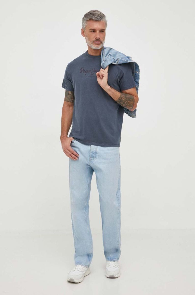 Бавовняна футболка Pepe Jeans Jayden колір синій з принтом