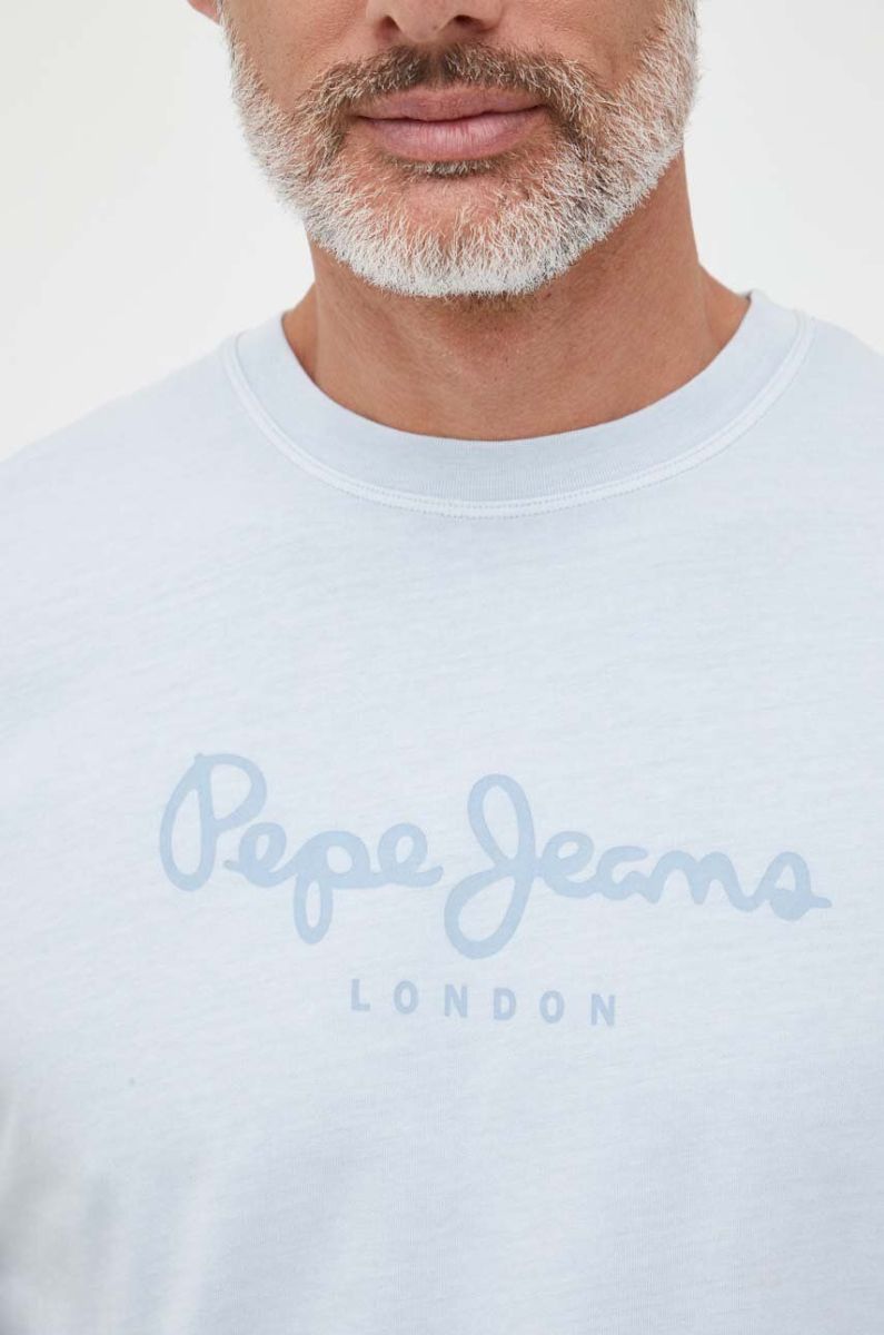 Бавовняна футболка Pepe Jeans JAYDEN з принтом колір блакитний