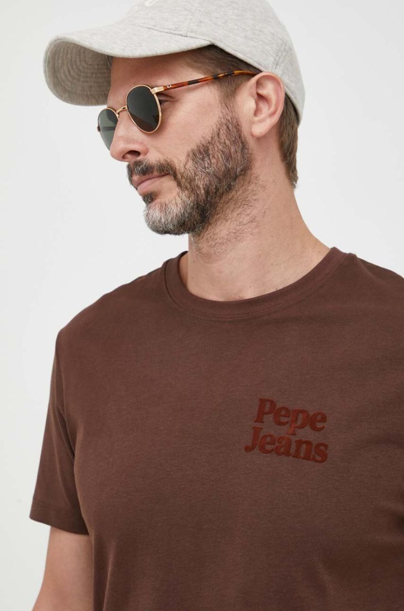Бавовняна футболка Pepe Jeans колір коричневий однотонний (3594040)
