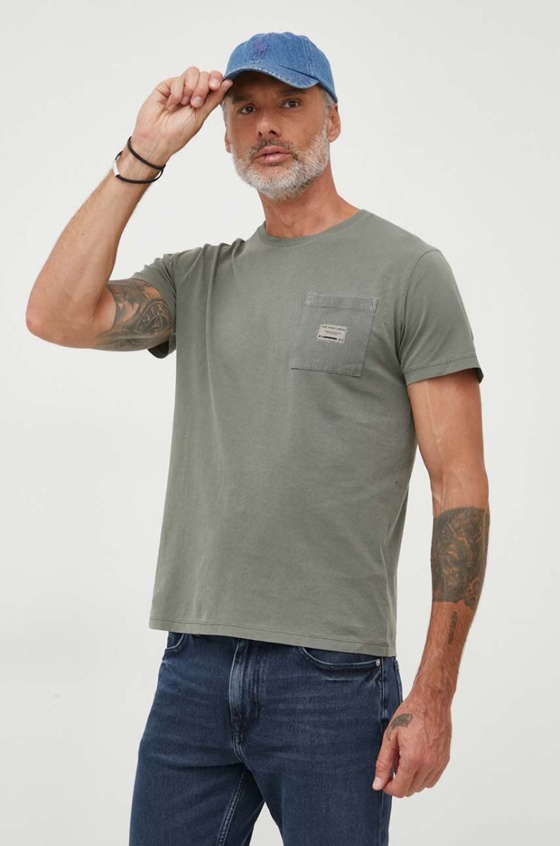 Бавовняна футболка Pepe Jeans Oxford колір зелений однотонний