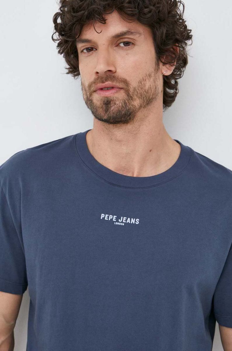 Бавовняна футболка Pepe Jeans Raevon колір синій з принтом