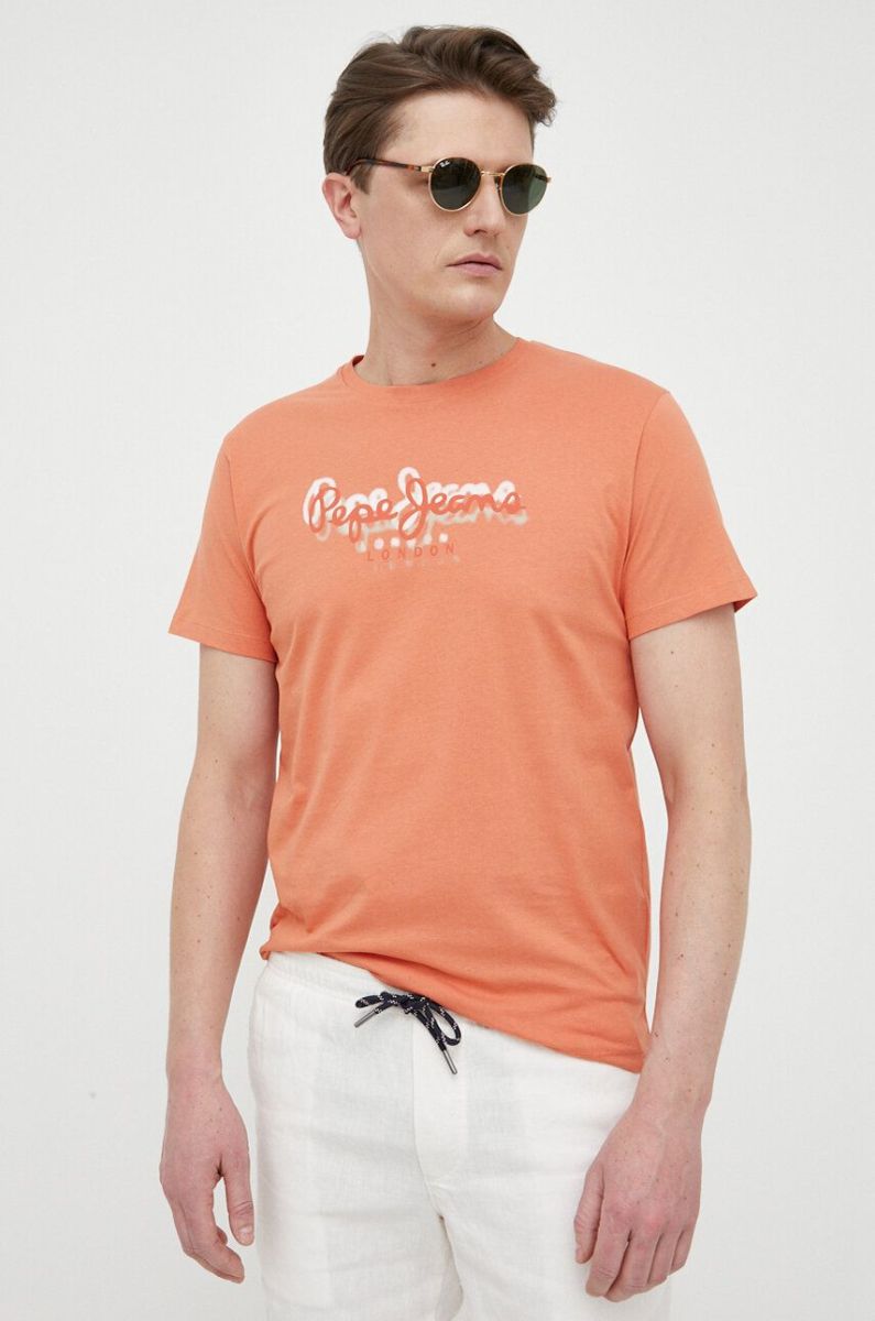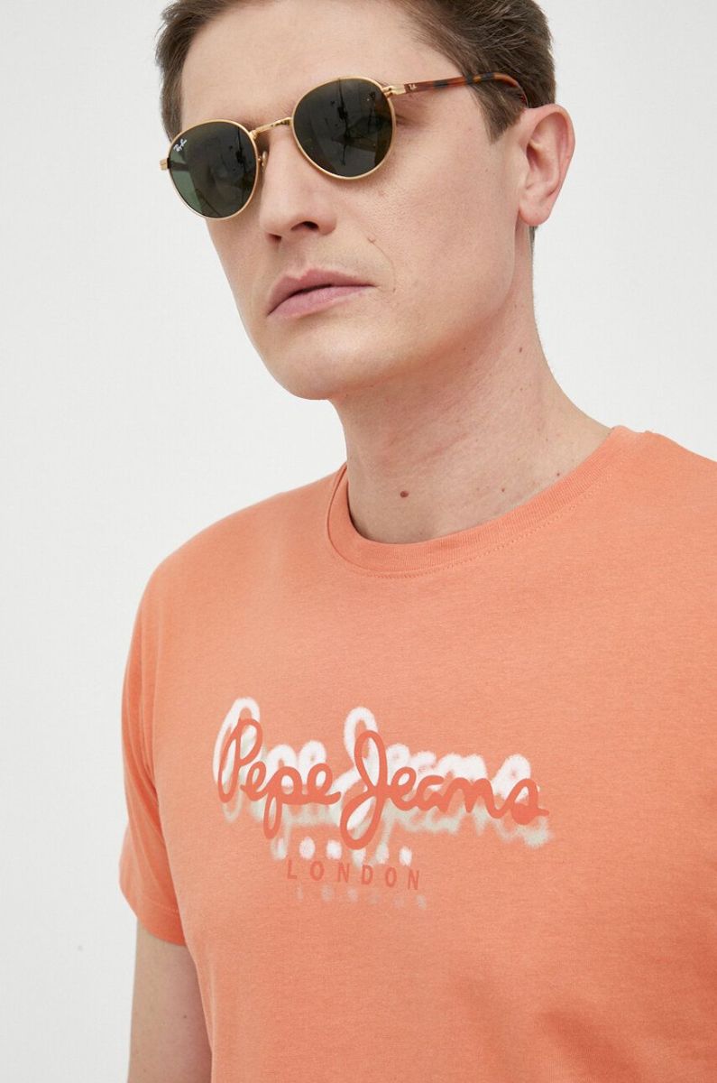 Бавовняна футболка Pepe Jeans Richme колір помаранчевий з принтом