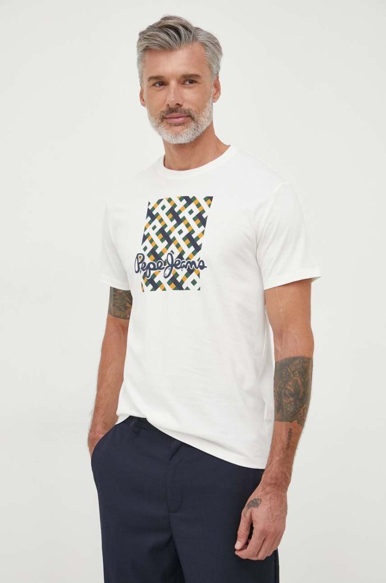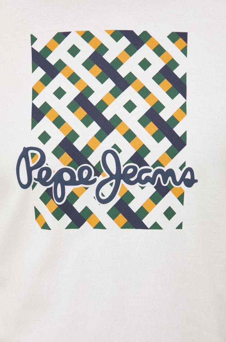 Бавовняна футболка Pepe Jeans WARREN колір бежевий з принтом