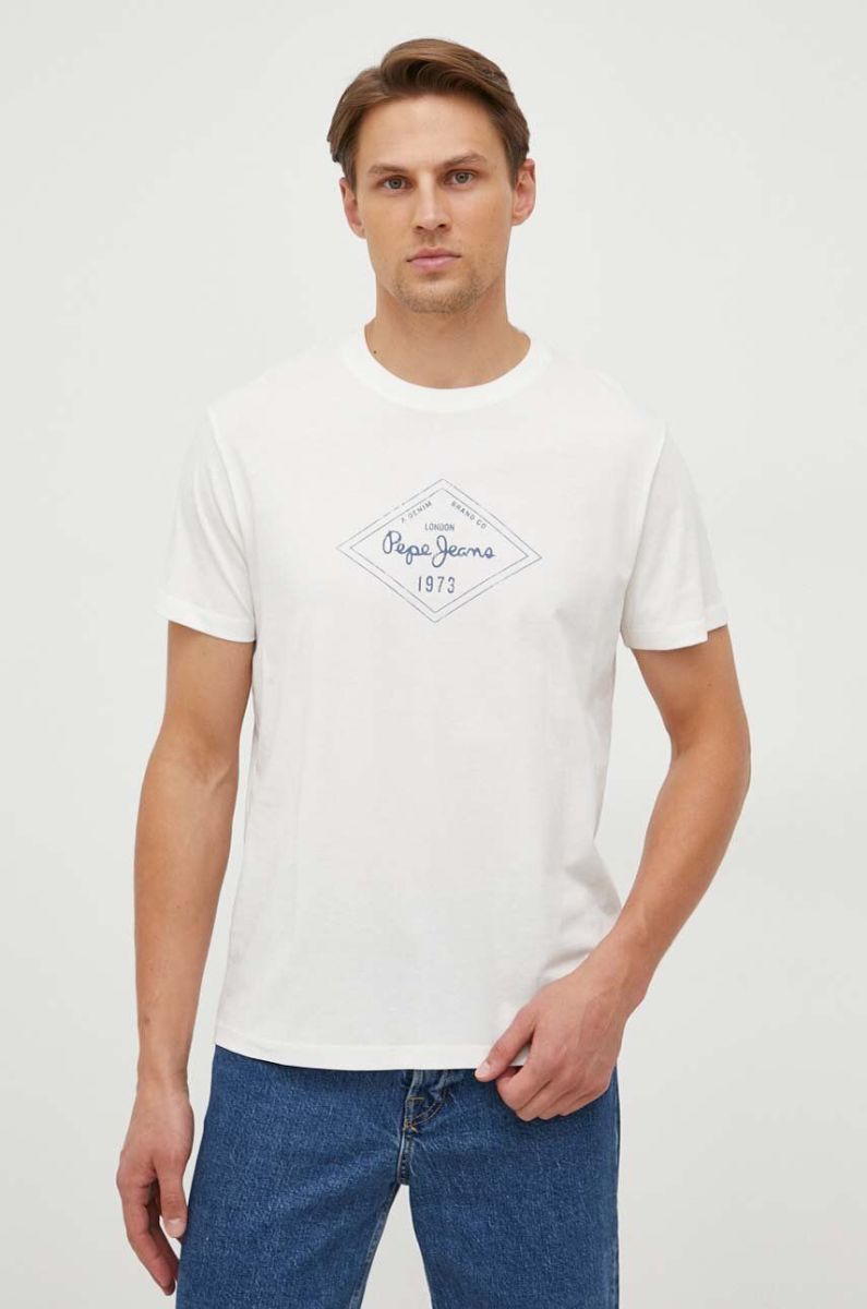 Бавовняна футболка Pepe Jeans Wasley чоловіча колір бежевий з принтом