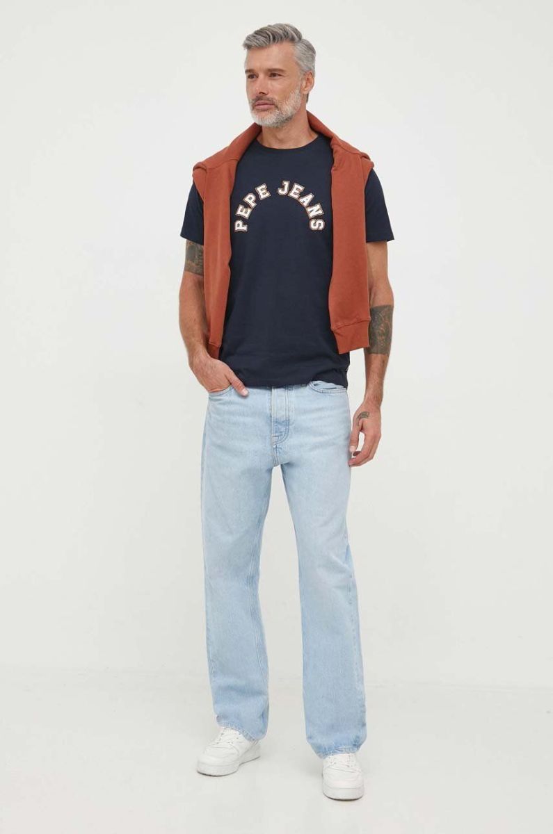 Бавовняна футболка Pepe Jeans Westend колір синій з принтом