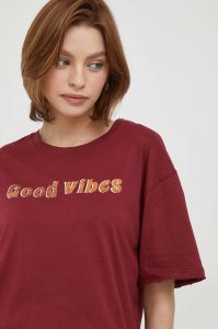 Бавовняна футболка Pepe Jeans жіночий колір бордовий