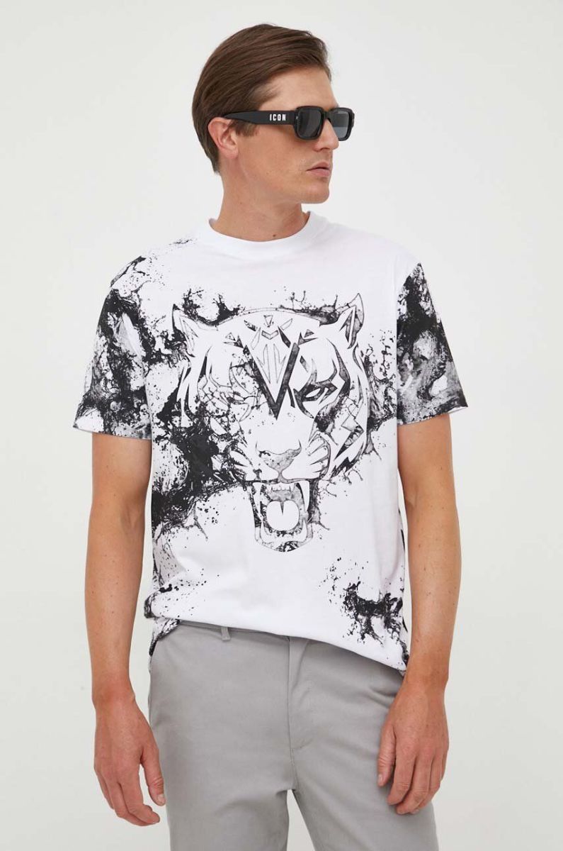 Бавовняна футболка PLEIN SPORT колір білий з принтом (3375571)