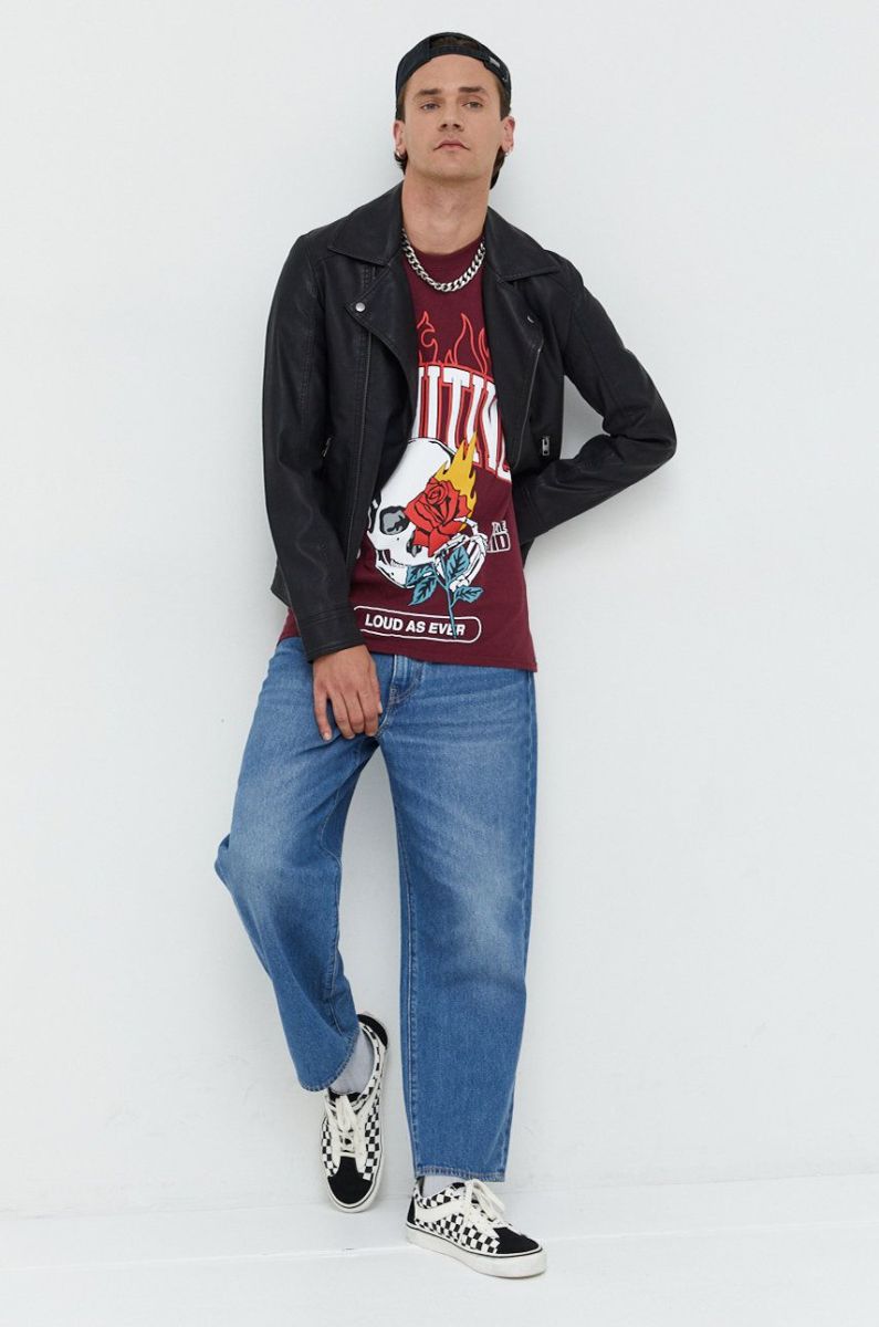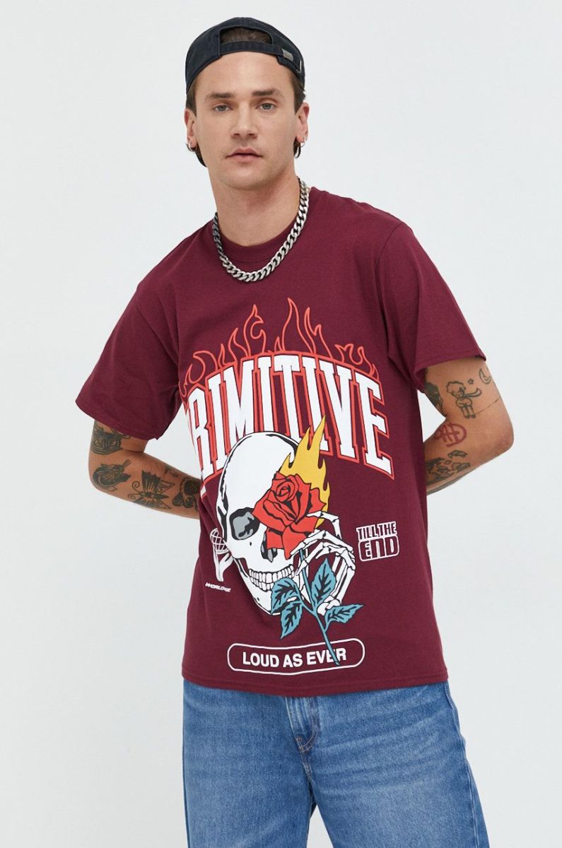 Бавовняна футболка Primitive колір бордовий з принтом (2725457)
