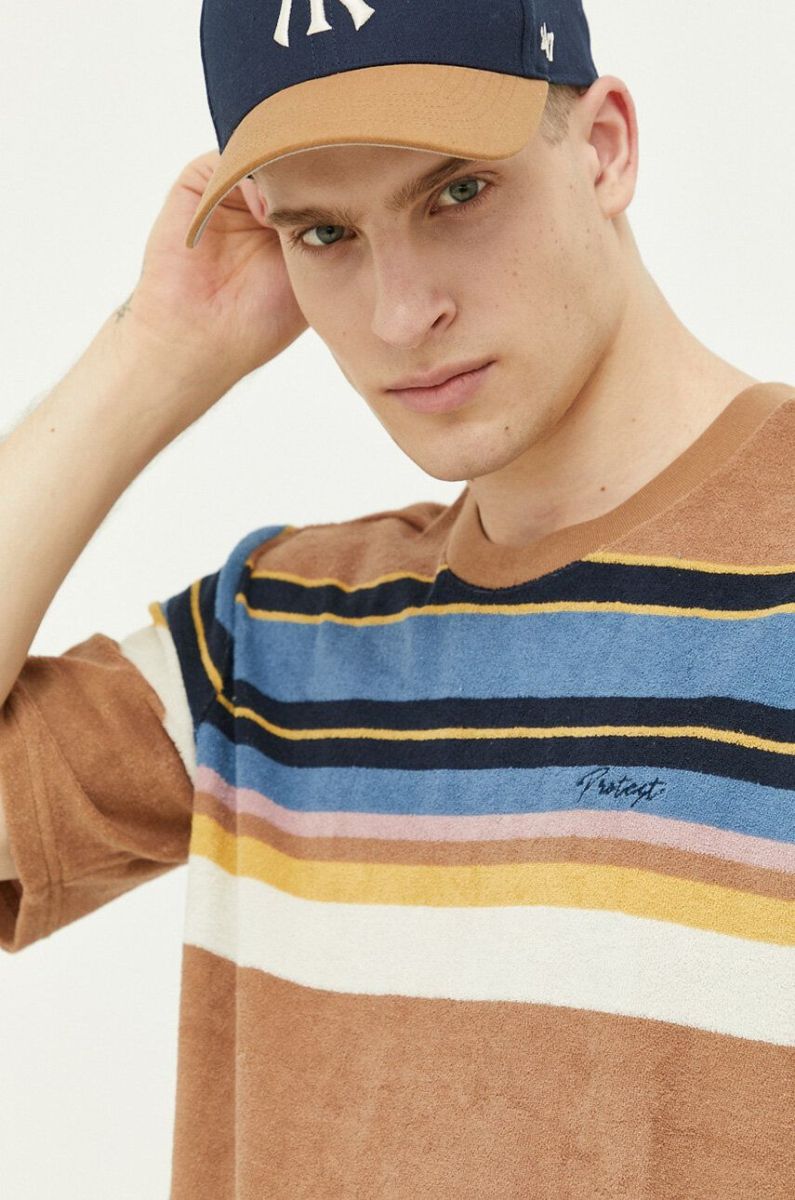 Бавовняна футболка Protest колір коричневий візерунок