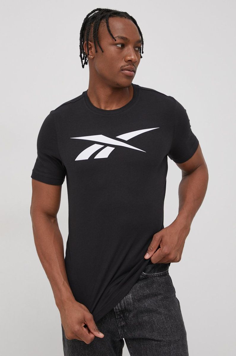 Бавовняна футболка Reebok колір чорний з принтом (1971616)