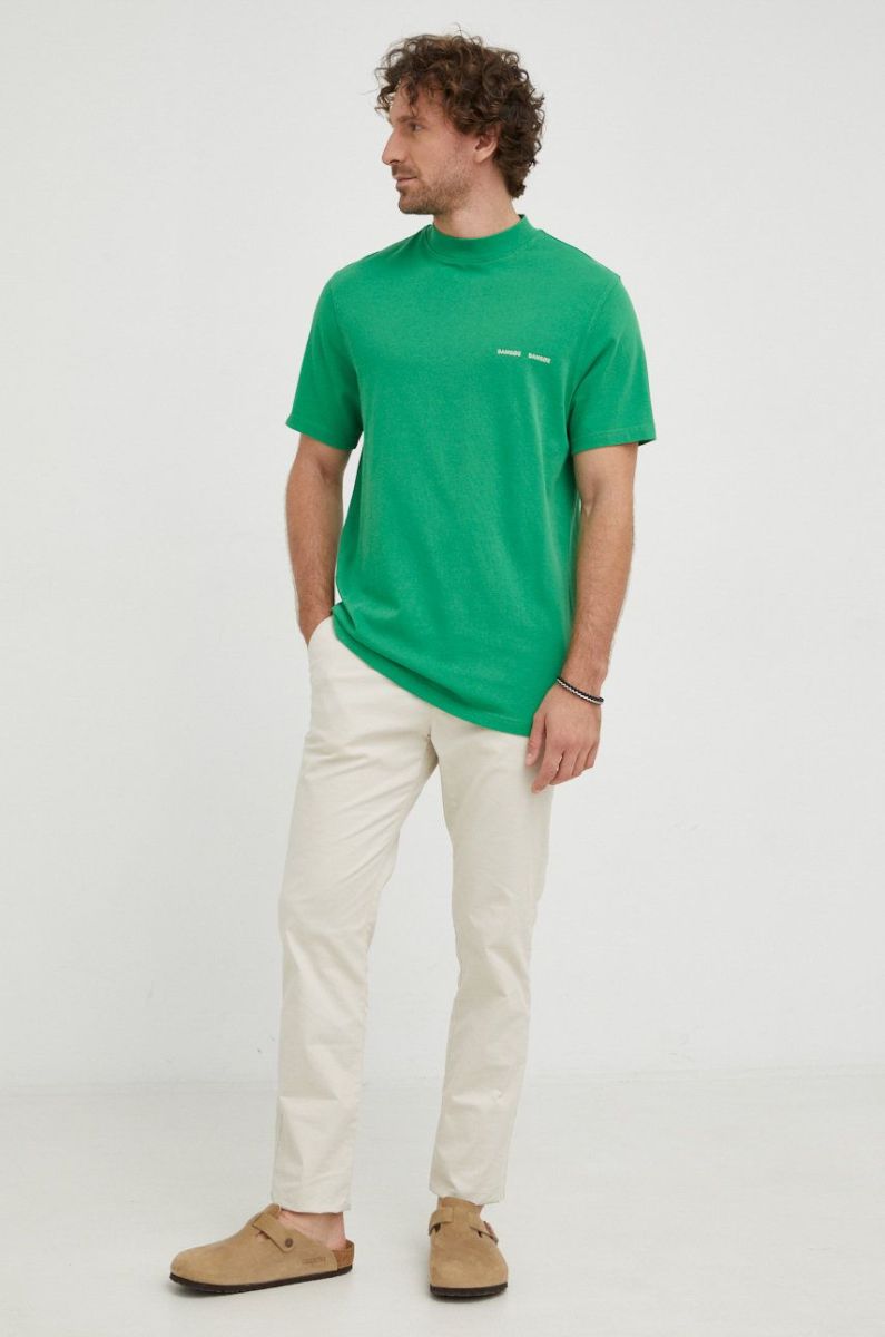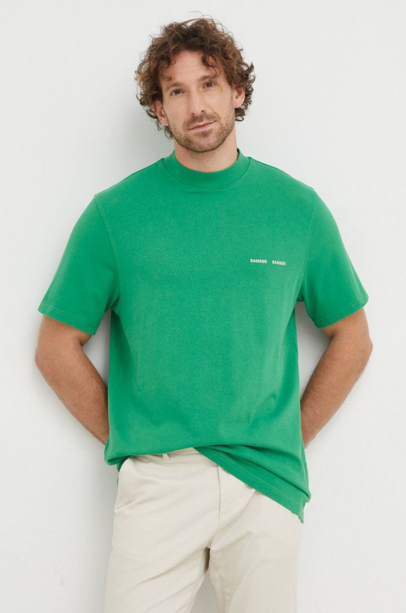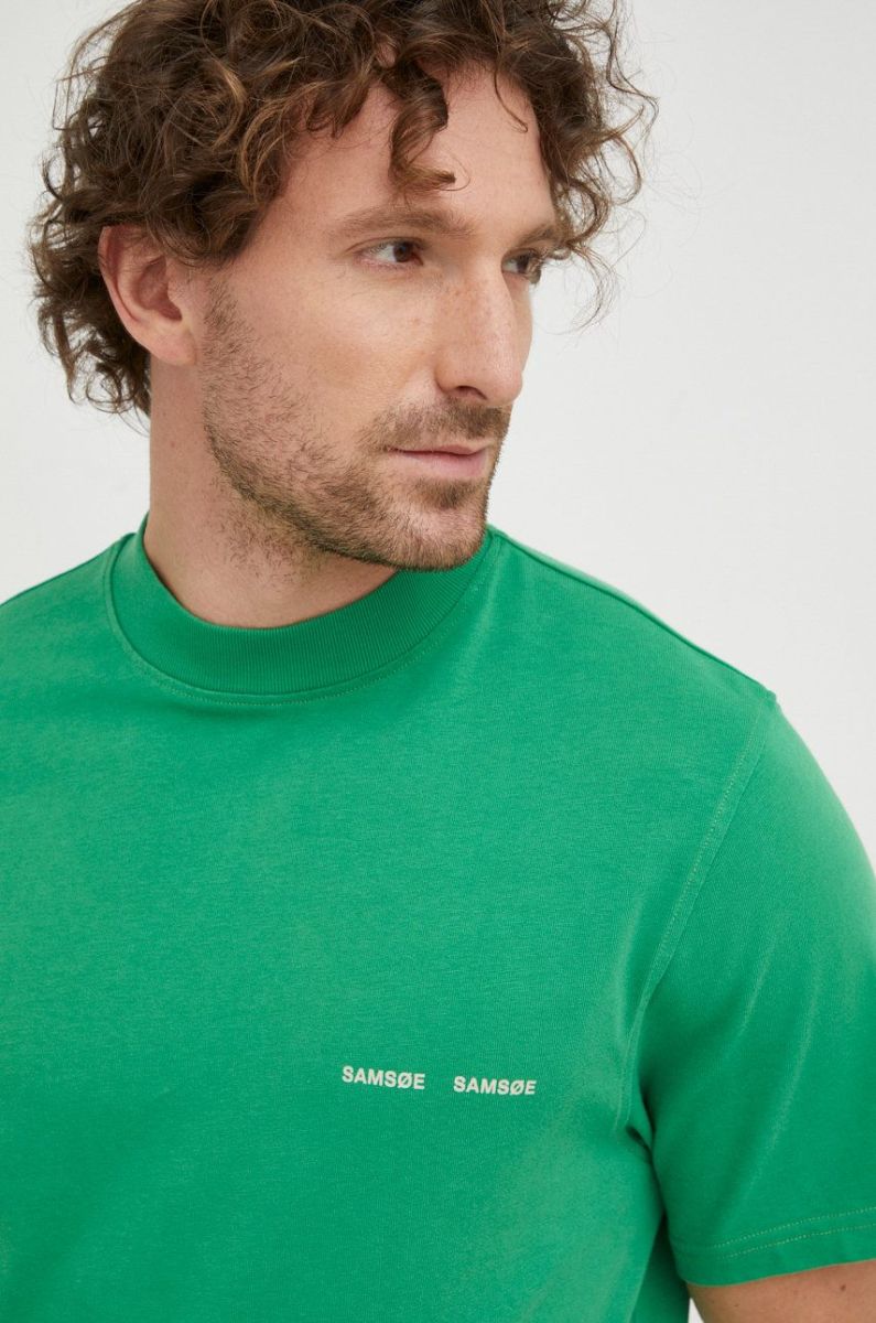 Бавовняна футболка Samsoe Samsoe колір зелений однотонна
