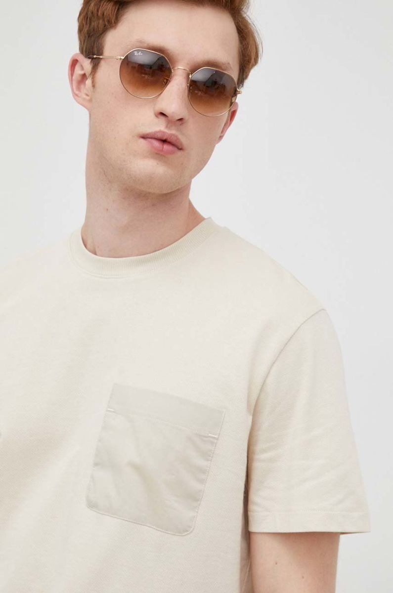 Бавовняна футболка Selected Homme колір бежевий однотонний