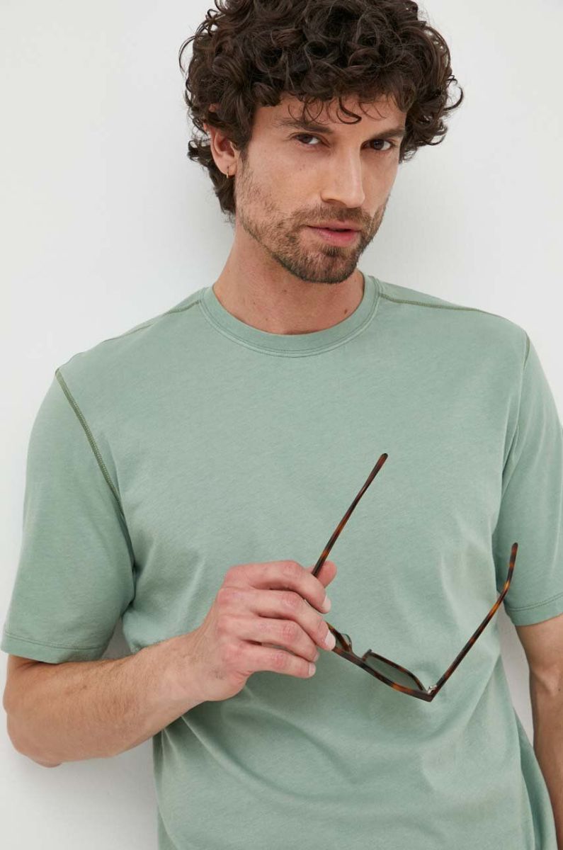 Бавовняна футболка Sisley колір зелений однотонний (3283441)