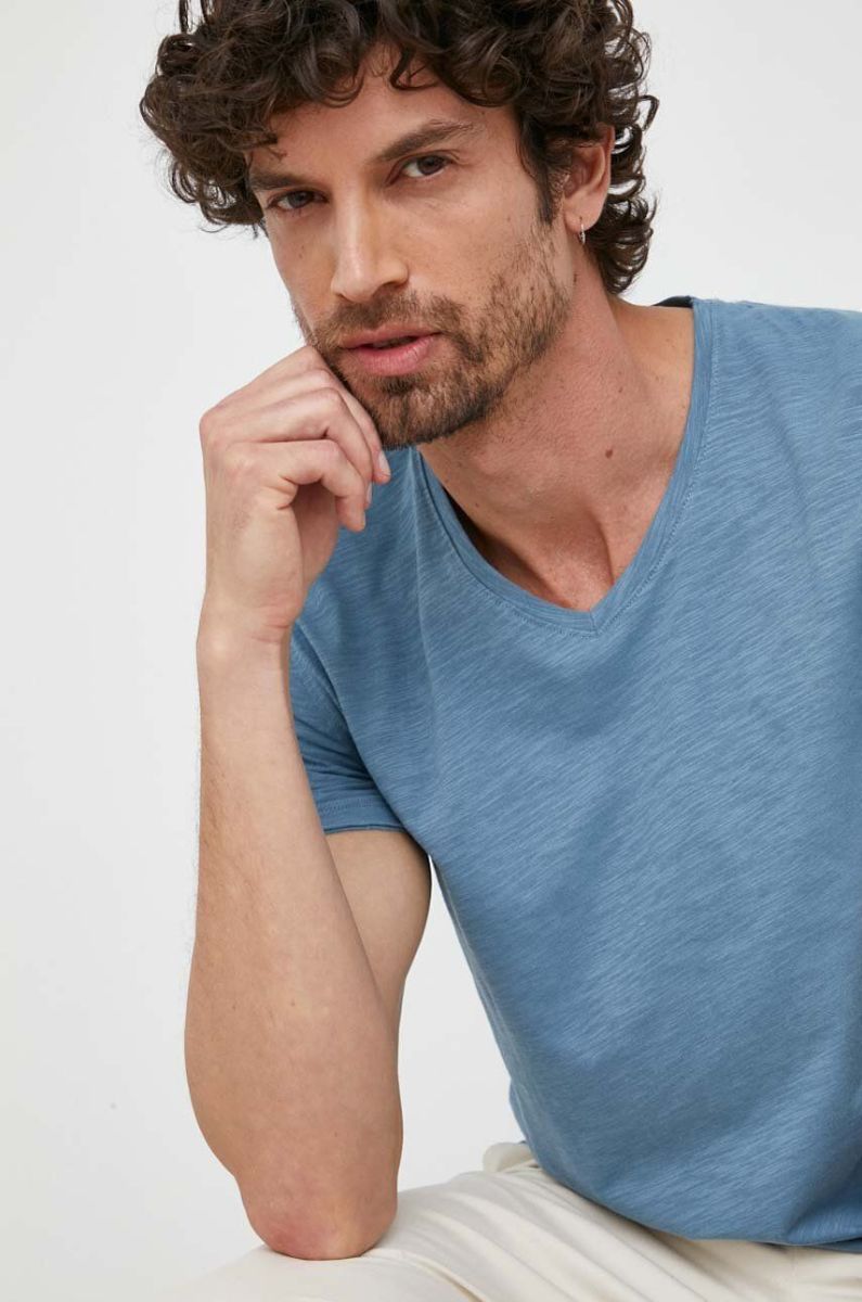 Бавовняна футболка Sisley меланж колір блакитний
