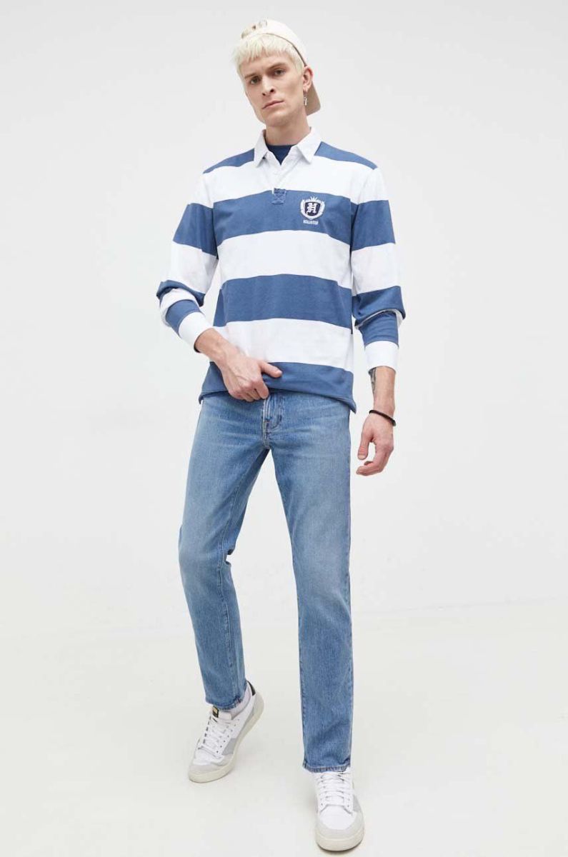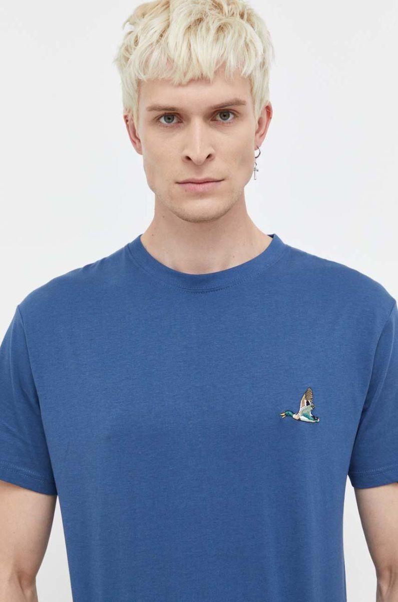 Бавовняна футболка Solid чоловічий з аплікацією колір блакитний