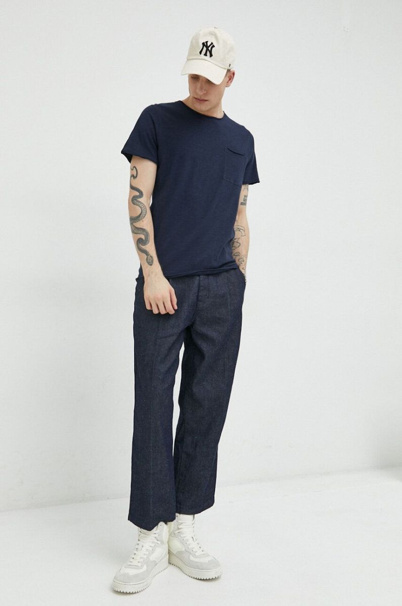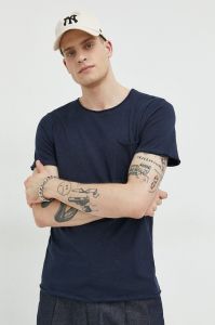Бавовняна футболка Solid колір синій однотонний (3040445)
