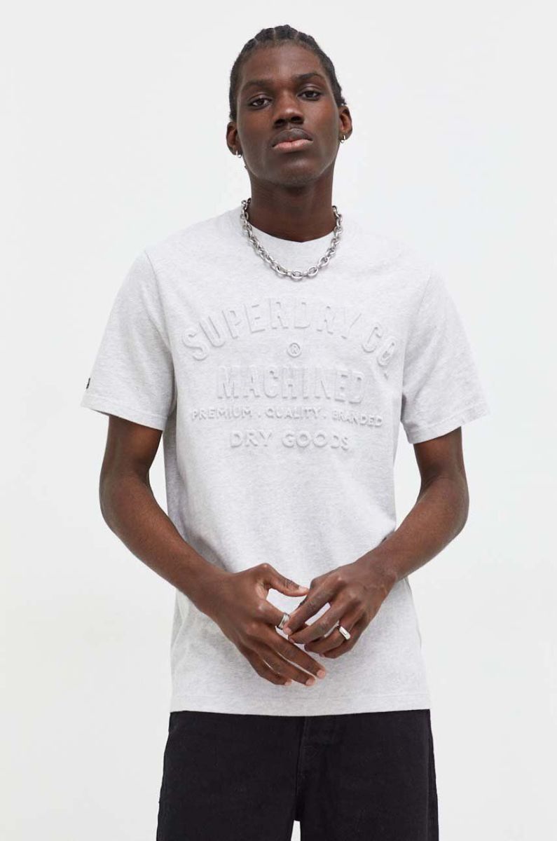 Бавовняна футболка Superdry чоловічий колір сірий з принтом