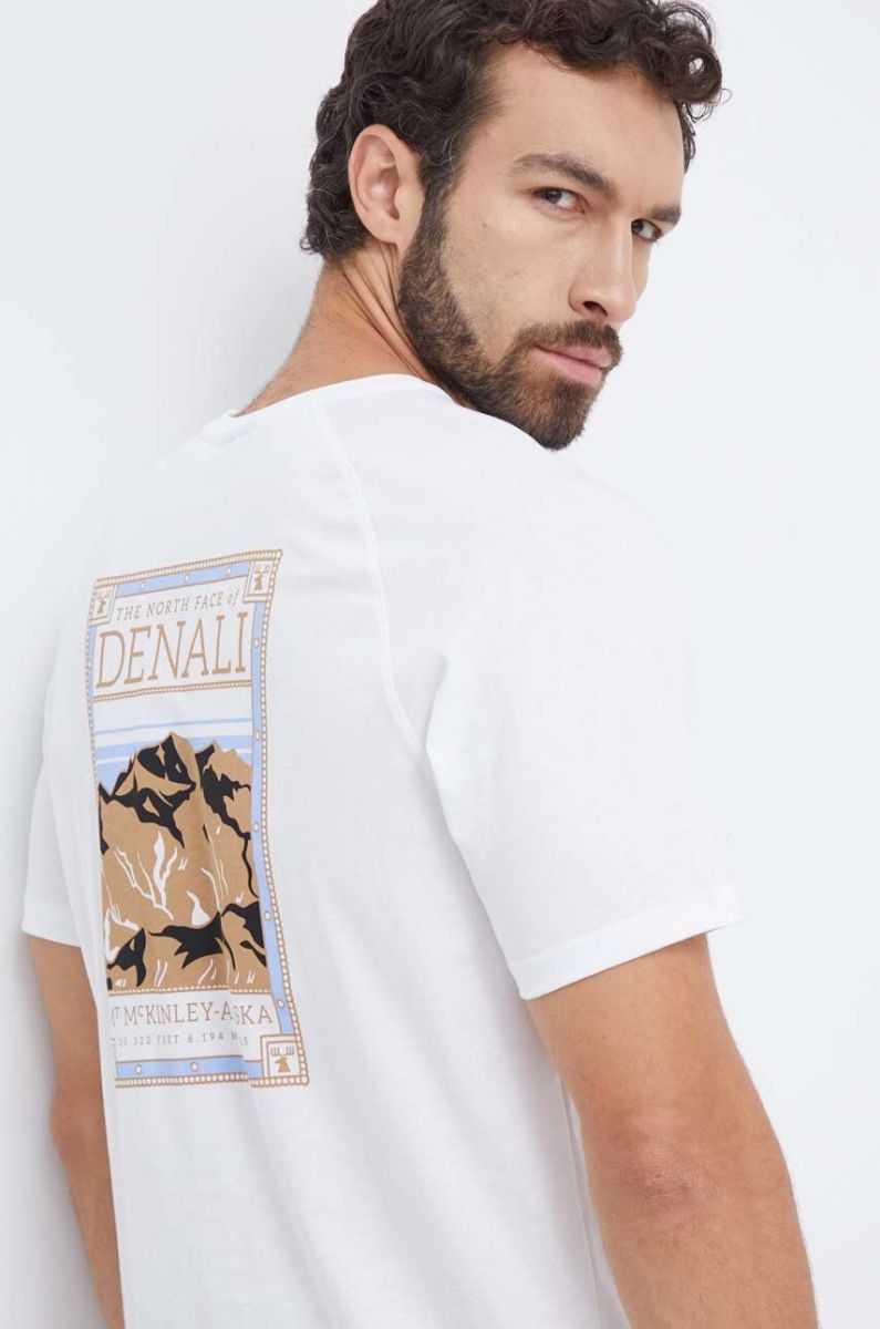 Бавовняна футболка The North Face чоловічий колір білий з принтом