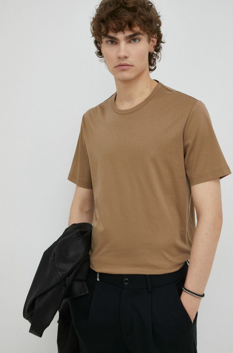 Бавовняна футболка Tiger Of Sweden колір бежевий однотонний
